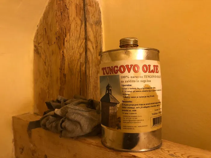 I finished the timbers with a tung oil—I find the smell gentler than than linseed oil (the other standard candidate for a finishing oil), which is particularly relevant in a small space. I happened to have a can of tung oil lying around waiting to be used, and these timbers were a perfect opportunity to use it.